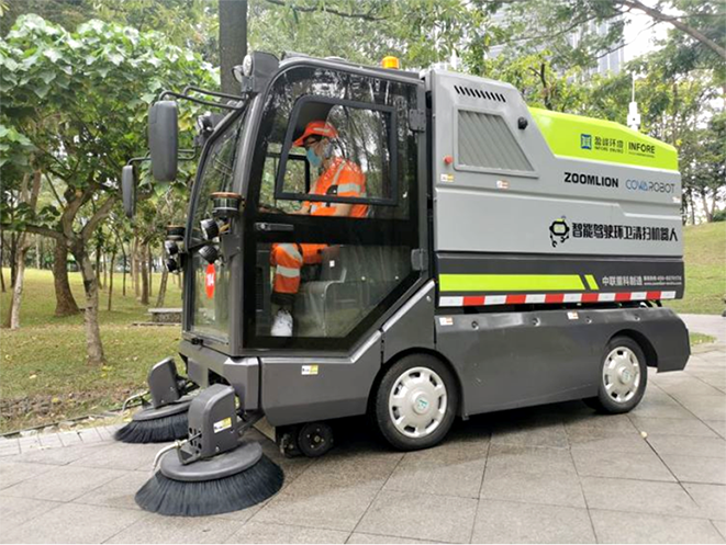 ▲智能清掃車可在有人駕駛和無人駕駛之間切換