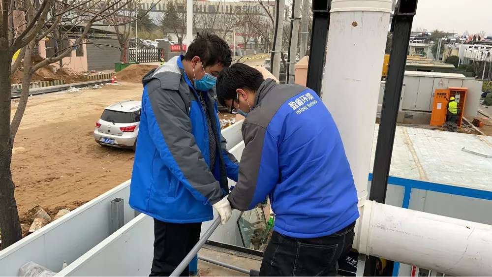 設(shè)備投入運(yùn)行,兩套一體站安裝在醫(yī)院隔離區(qū)外,總占地不超過4㎡,系統(tǒng)采用全封閉管路,保證維護(hù)人員的安全,可隨時進(jìn)行維護(hù),確保監(jiān)測數(shù)據(jù)準(zhǔn)確。