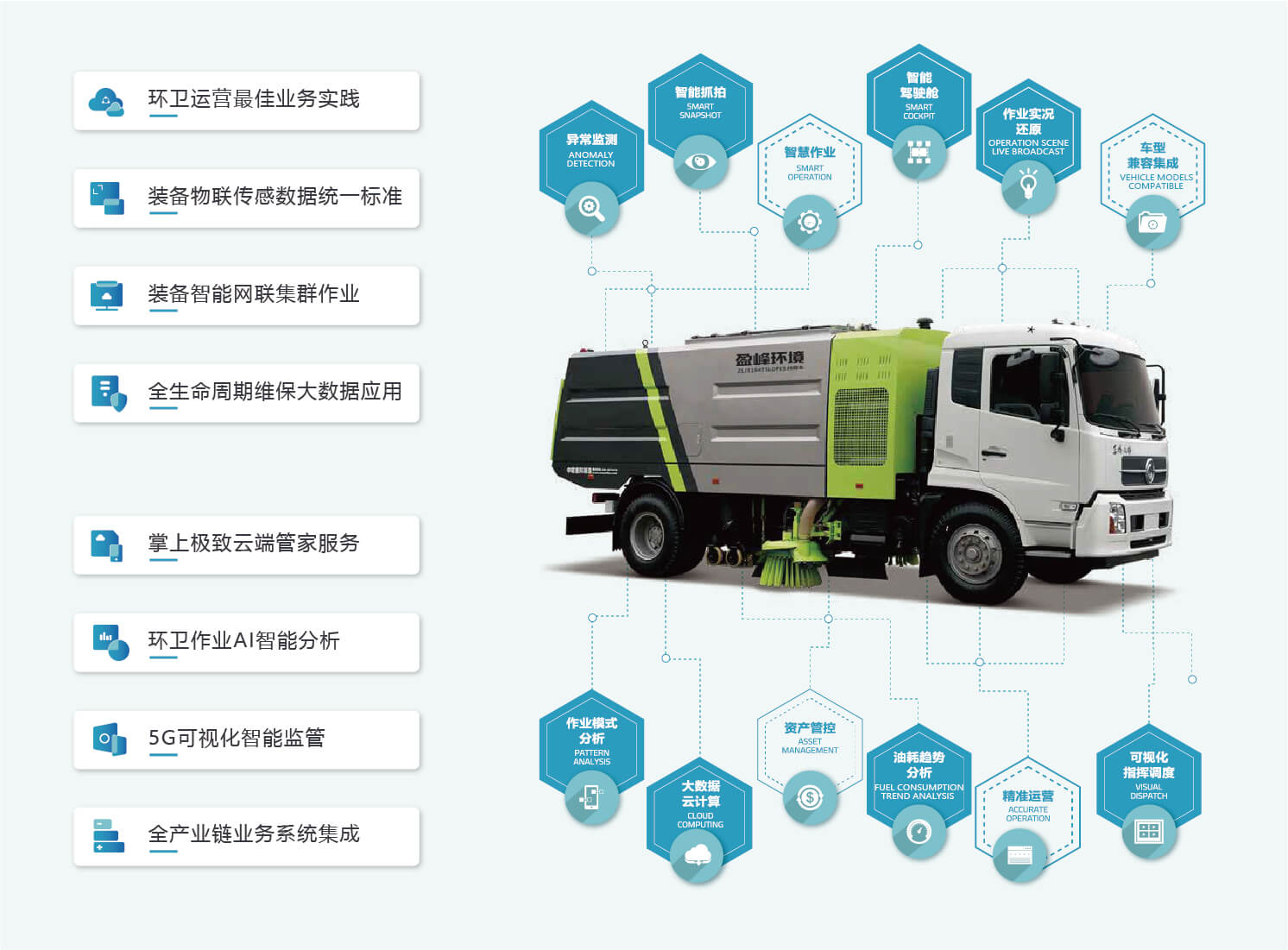 基于互聯網、物聯網、人工智能、大數據、云計算等技術,公司自主開發國內領先的環衛全產業鏈智慧環衛云平臺,該平臺擁有58余項智慧環衛相關的軟件著作權及專利,匯集全球智慧融合“大云物移智”技術,實時互聯城市服務中的人、車、物、事,形成全域服務治理模式,并以“數智化”賦能城市面貌出新出彩。目前平臺已在全國254個城市落地環衛數字化運營項目,為全國超10萬臺產品的客戶提供智能服務,為智慧城市建設實現高效的生產空間、宜居的生活空間、和諧的生態空間賦能助力。
